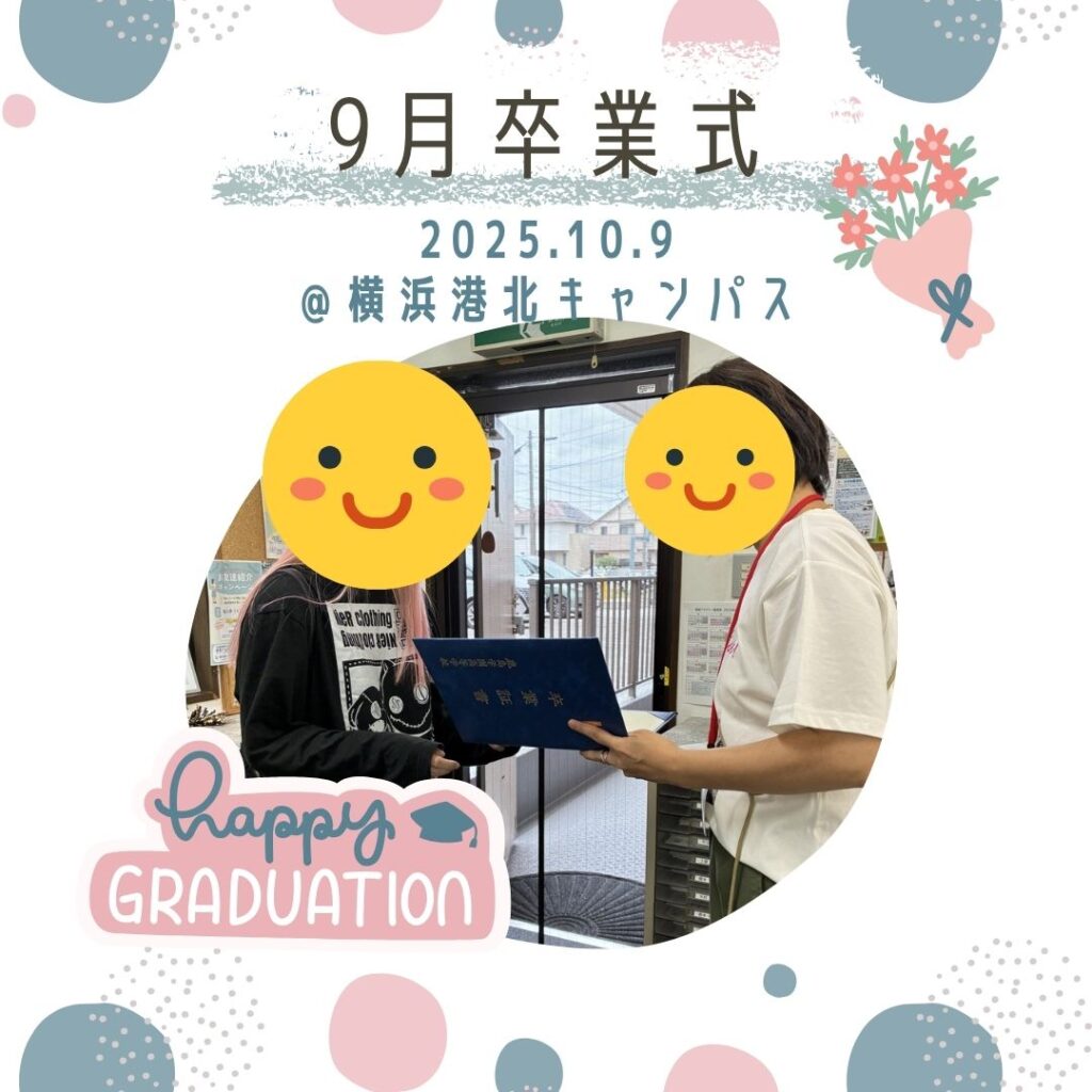 昨日のことですが、横浜港北キャンパスでも9月卒業の生徒のミニ卒業式を行いました🌸