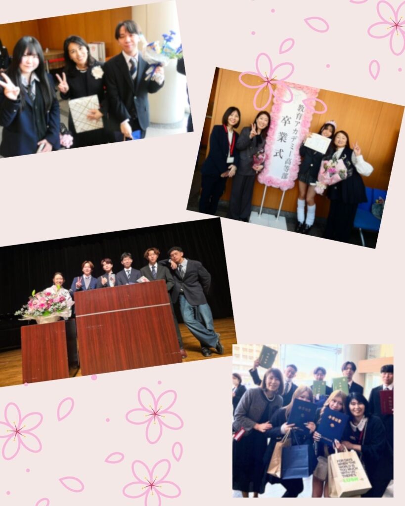 8キャンパス合同での卒業式。卒業証書授与から始まり、在校生・卒業生からの言葉、式辞、思い出ビデオの上映、祝辞と続きました。式の後には、笑顔で写真を撮り合い、言葉を交わしながら、温かく和やかな時間となりました😊✨